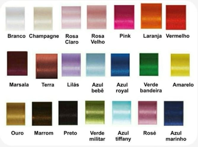 Escolha sua cor a partir desta tabela abaixo - temos mais cores disponíveis